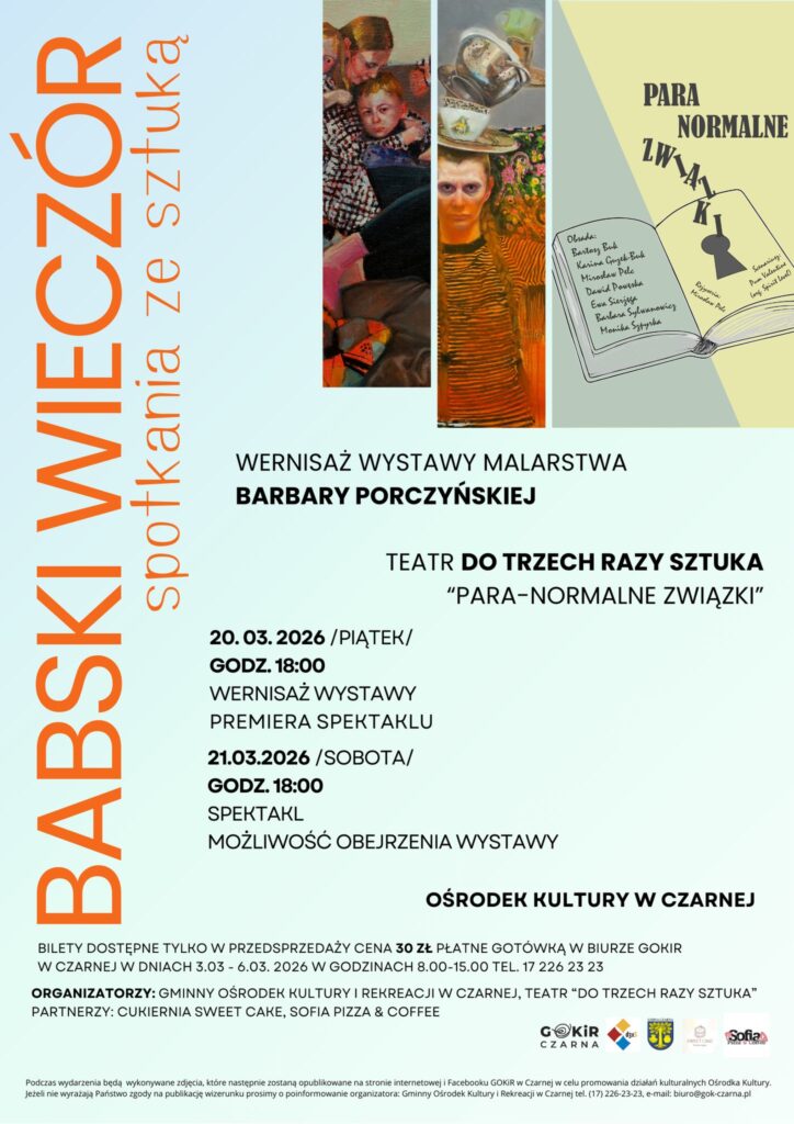 Podwójna dawka sztuki jednego wieczoru! Najpierw spotkanie z malarstwem – pełnym emocji i kobiecej wrażliwości – a następnie teatralna premiera z humorem opowiadająca o relacjach damsko-męskich… tych zwyczajnych i tych zupełnie para-normalnych ![]()