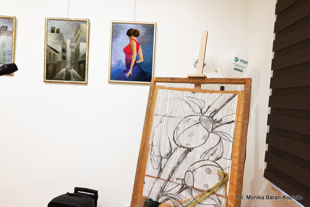 𝐖𝐲𝐬𝐭𝐚𝐰𝐚 𝐩𝐫𝐚𝐜 Katarzyna Decowska lokalnej miłośniczki sztuki tkania artystycznego, którapowadziła warsztaty dla mieszkańców przez ostatnie kilka miesięcy. Podczas wystawy wyeksponowane zostały również efekty pracy uczestników warsztatów.